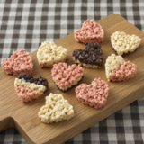 ようやく出来上がった3色のショコラクランチを息子と一緒にハートの型15個に入れていく。